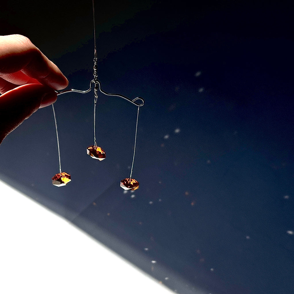 These adorable miniature spinning mobiles are made in house at our shop in Austin. Hang in a sunny window and enjoy beautiful little sprinkles of rainbows. Sure to bring delight any room, these make excellent presets.