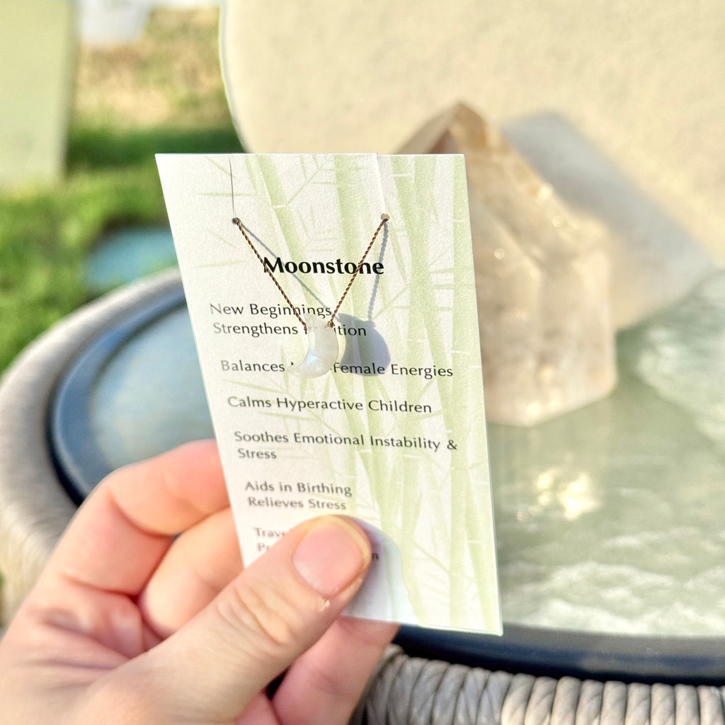 “New beginnings. Strengthens intuition. Balances male-female energies. Calms hyperactive children. Soothes emotional instability and stress. Aids in birthing. Relieves stress. Traveler’s stone. Promotes intuition."